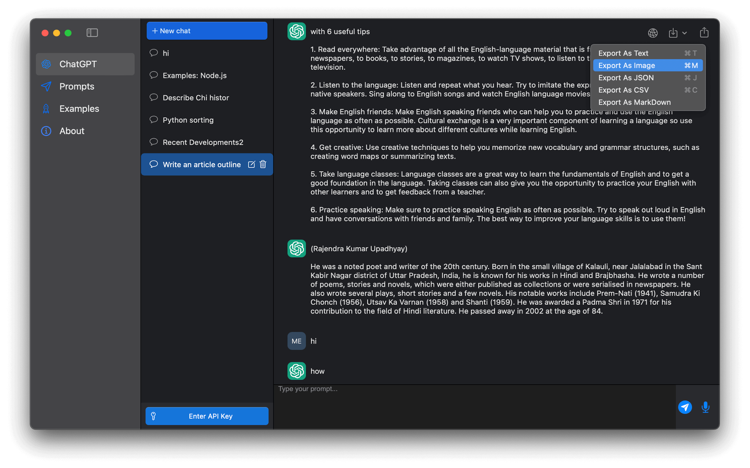 - Copy prompts and favorite prompts.